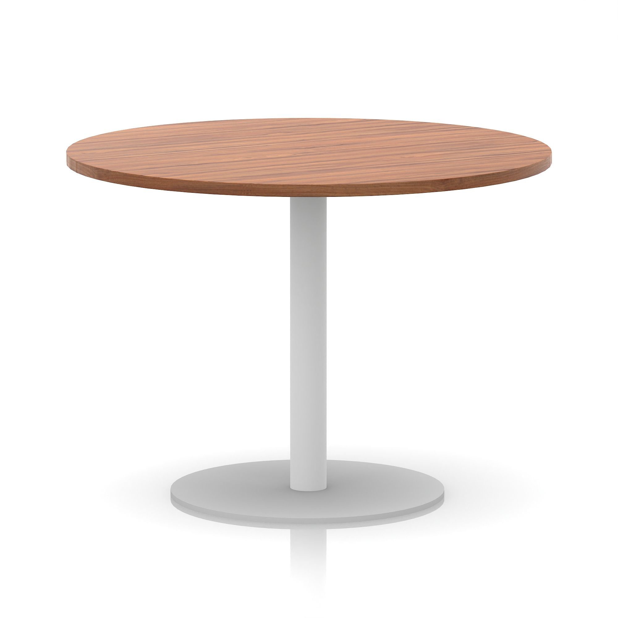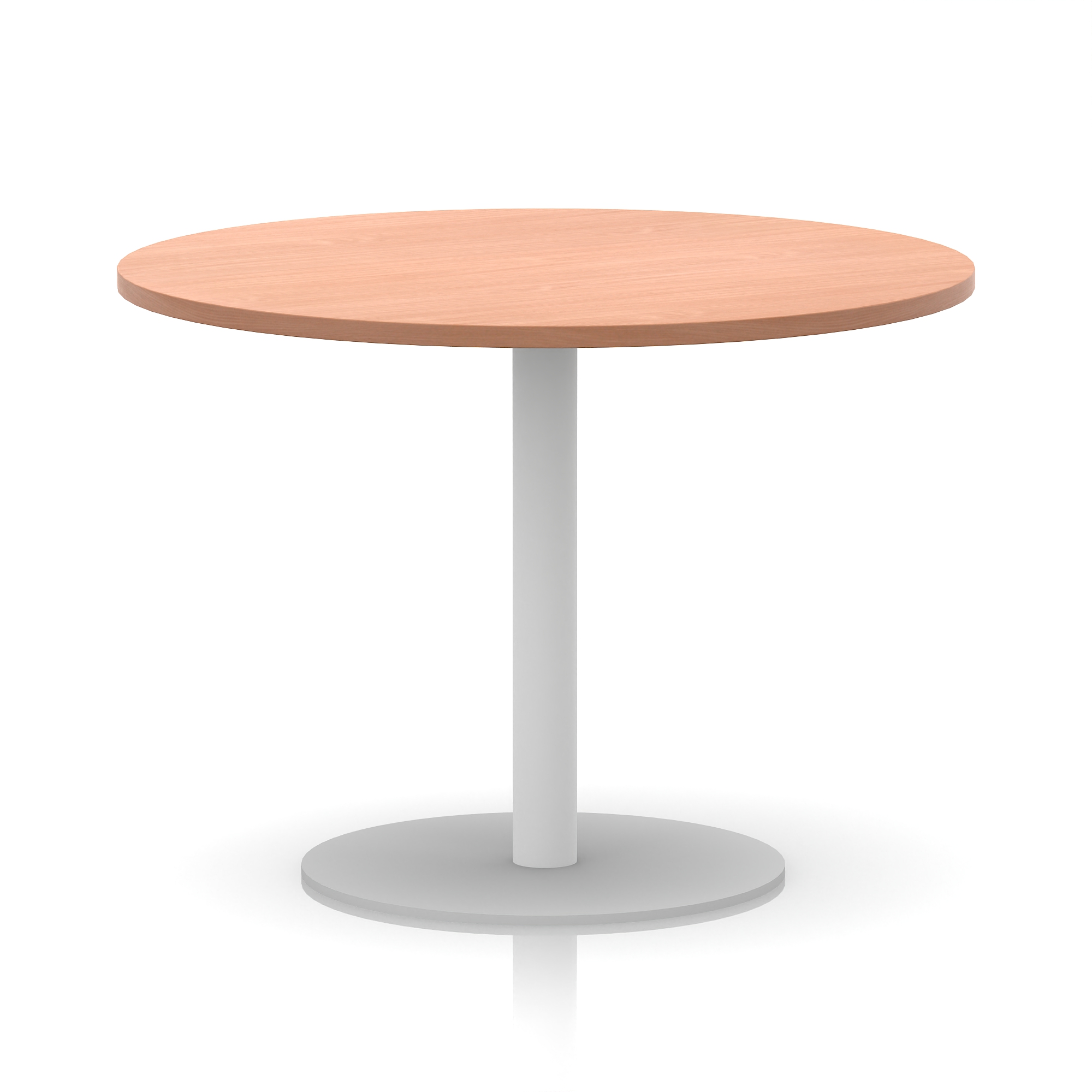 25mm thick desk top profile | Brushed stainless steel effect circular base (580mm diameter) | Brushed stainless steel pillars (76mm diameter) | Weighted base provides stability | Two part bolted frame system